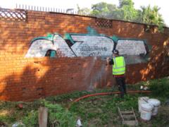 Graffiti Tags being removed from a face brick wall by G.R.S