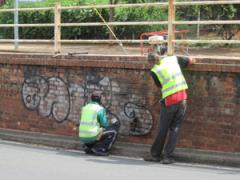 Fly paper posters and glue removed from concrete bridge by G.R.S