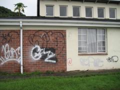 Graffiti Tags high pressure cleaned from face brick wall by G.R.S