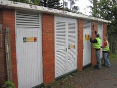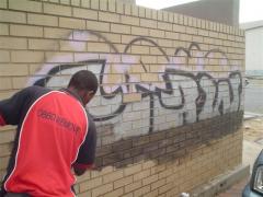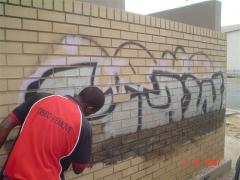 Graffiti Tags being removed from face brick by G.R.S