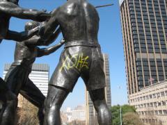 Graffiti Tags removed from historical Miners Statue for COJ by G.R.S