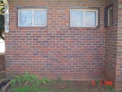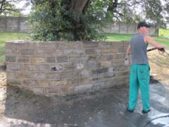 Graffiti removed from vibracrete pebble wall by G.R.S