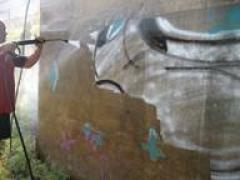 Graffiti Tags being removed from Concrete bridge by G.R.S