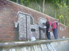 Graffiti Tags being removed from face brick by G.R.S