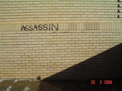 Final stage in removing Solid Graffiti Tag from facebrick by G.R.S