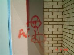 Graffiti Tag removed from painted surface and face brick by G.R.S