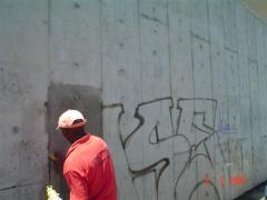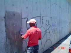 Graffiti Tags being removed from concrete wall by G.R.S