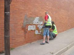 Graffiti Tags being removed from tar road surface by G.R.S |