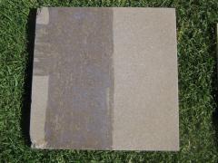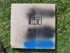 Graffiti shield demonstration on concrete tile, coating still wet followed by permanent marker and spray paint. |