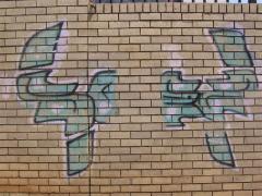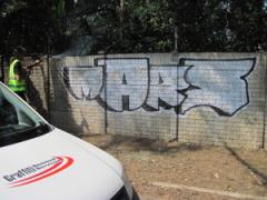 Graffiti Tags being removed from precast wall and face brick by G.R.S