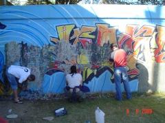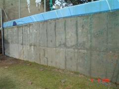 Graffiti being removed from concrete wall.