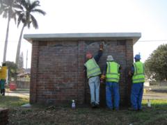 Graffiti Tags removed from substation face brick building by G.R.S