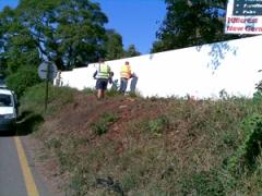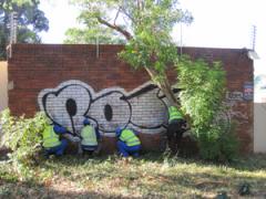 Graffiti and Enamel paint strip removal from a face brick wall by G.R.S