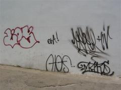 Graffiti Tags and white enamel painted sign removed from face brick by G.R.S